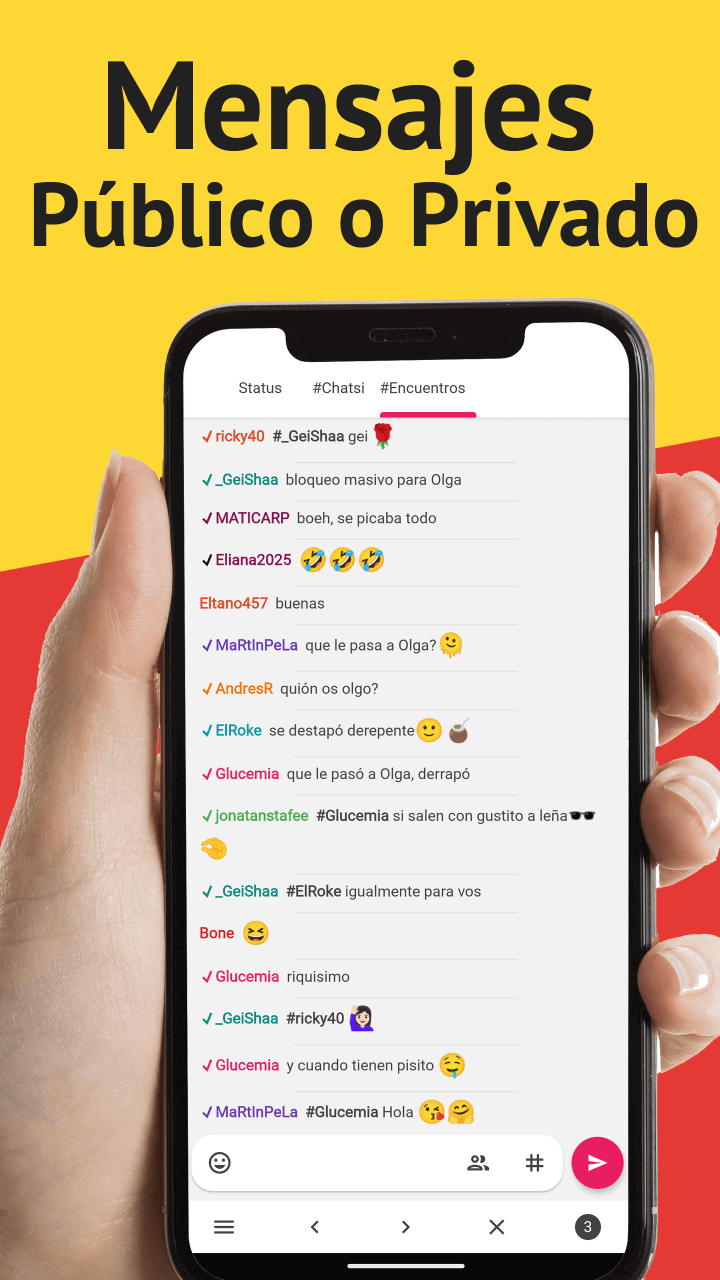 * Chats privados y públicos: Elige cómo y con quién conversar